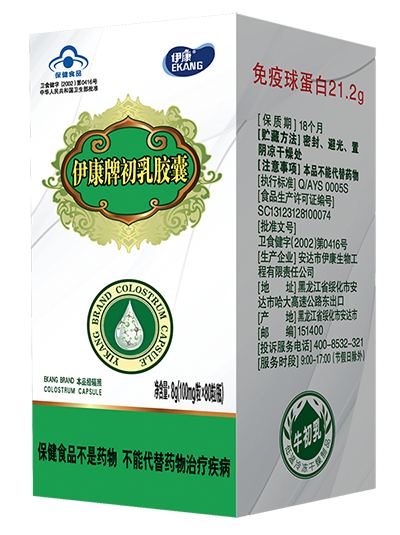 伊康牌初乳膠囊是以健康奶牛分娩后前48小時初乳為原料,經(jīng)生物活性保護(hù)技術(shù)、低溫冷凍干燥工藝提取而成的功能性**食品。