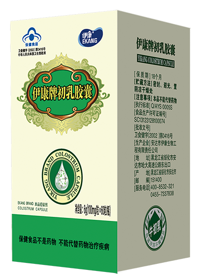 伊康牌初乳膠囊是以健康奶牛分娩后前48小時初乳為原料,經(jīng)生物活性保護技術(shù)、低溫冷凍干燥工藝提取而成的功能性**食品。