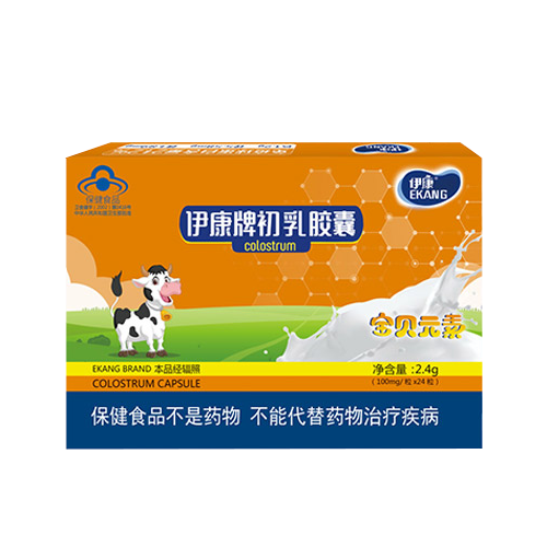 伊康牌初乳膠囊是以健康奶牛分娩后前48小時初乳為原料,經(jīng)生物活性保護(hù)技術(shù)、低溫冷凍干燥工藝提取而成的功能性**食品。