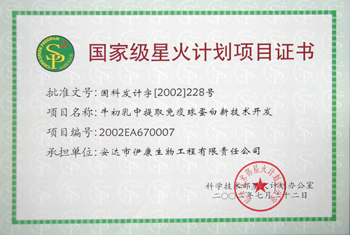 **級(jí)星火計(jì)劃項(xiàng)目證書