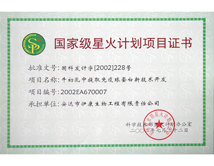 **級星火計劃項目證書